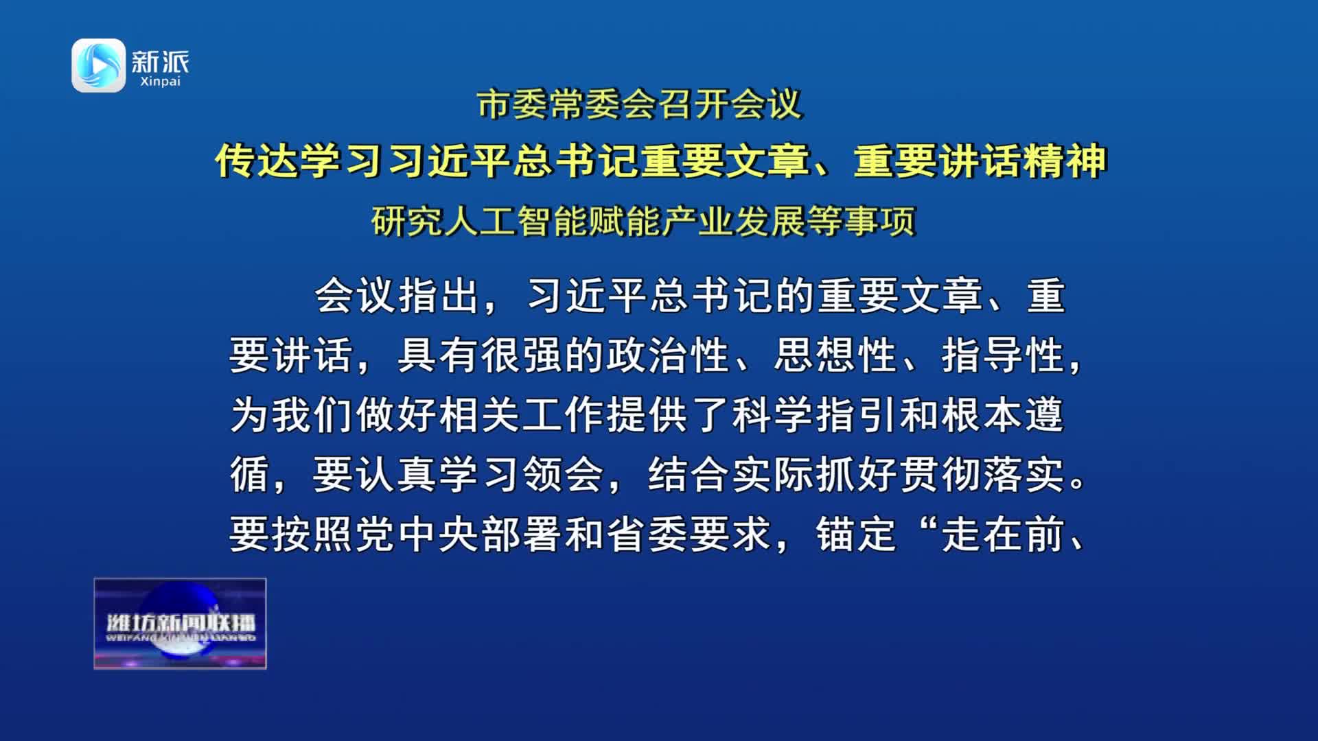 【濰坊新聞聯(lián)播】市委常委會召開會議 傳達學習習近平總書記重要文章、重要講話精神 研究人工智能賦能產(chǎn)業(yè)發(fā)展等事項