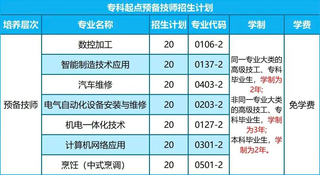 4.高級(jí)技工、專(zhuān)科、本科畢業(yè)生可報(bào)考專(zhuān)科起點(diǎn)預(yù)備技師班。