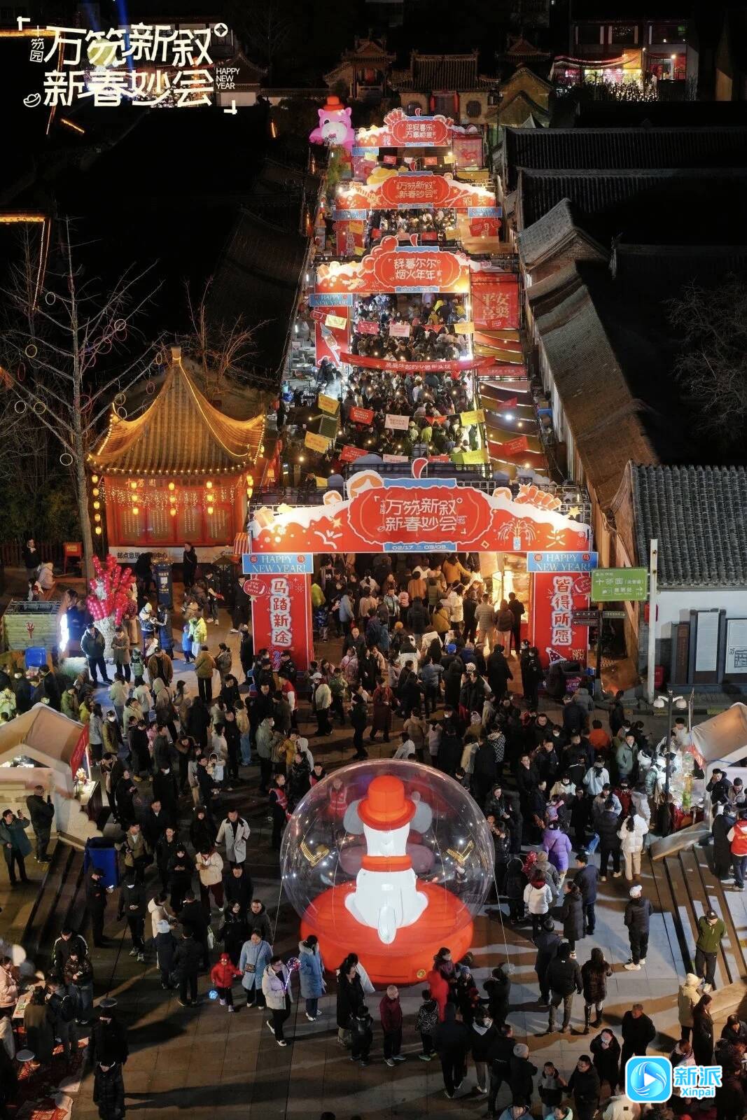 一匹憨態(tài)可掬的白馬,背后是一個碩大的紅福字,春節(jié)期間濰坊十笏園文化街區(qū)正門口的“馬兒帶福”成為網(wǎng)紅打卡地。告別傳統(tǒng)的趕大集形式,今年的“萬笏新敘·新春妙會”主題活動主打差異化、年輕化、暖氛圍,70+美食攤位、創(chuàng)意市集、主題展覽、沉浸式歌舞演出、NPC互動巡游,讓十笏園文化街區(qū)成為游客向往的快樂老家。